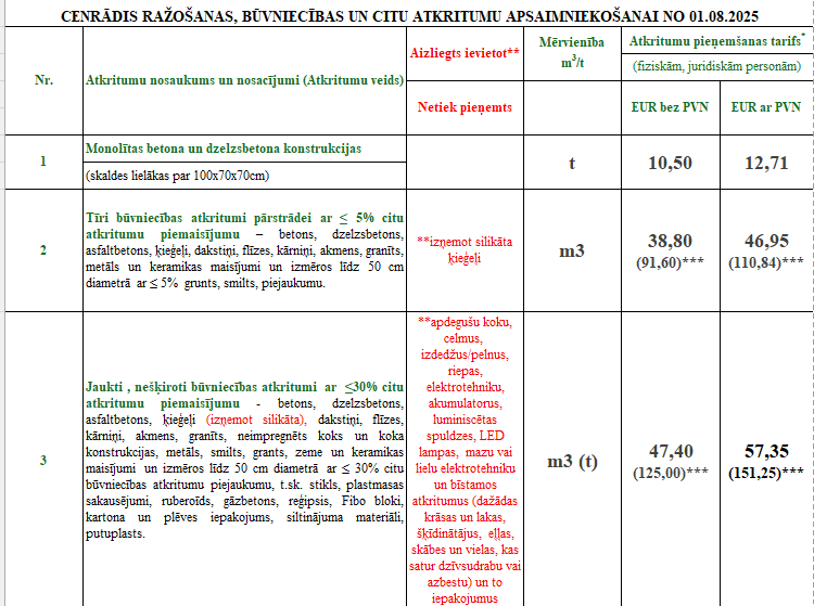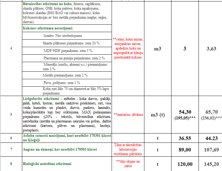 atkritumi tiek piemērots papildus neatbilstošas kravas izcenojums 195,00 EUR /t